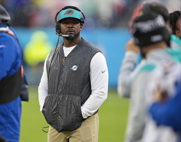 Brian Flores was one of a few nonwhite head coaches until he was fired after the 2022 season. Photo by Wesley Hitt/Getty Images George B. ...