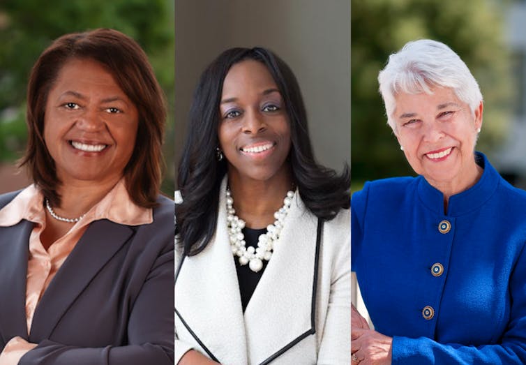 From left to right, Michele Ozumba, Carmen Twillie Ambar and Carol Christ. Thalia Plata, The Conversation How have female leaders in higher ...