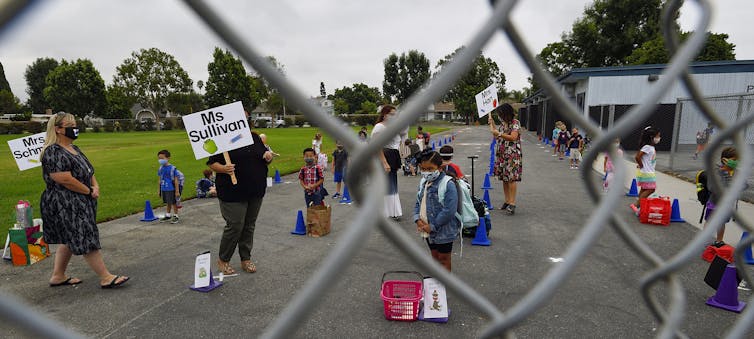 Teachers organize their socially distanced students at Weaver Elementary School in Rossmoor, California. Jeff Gritchen/MediaNews Group/Orange ...